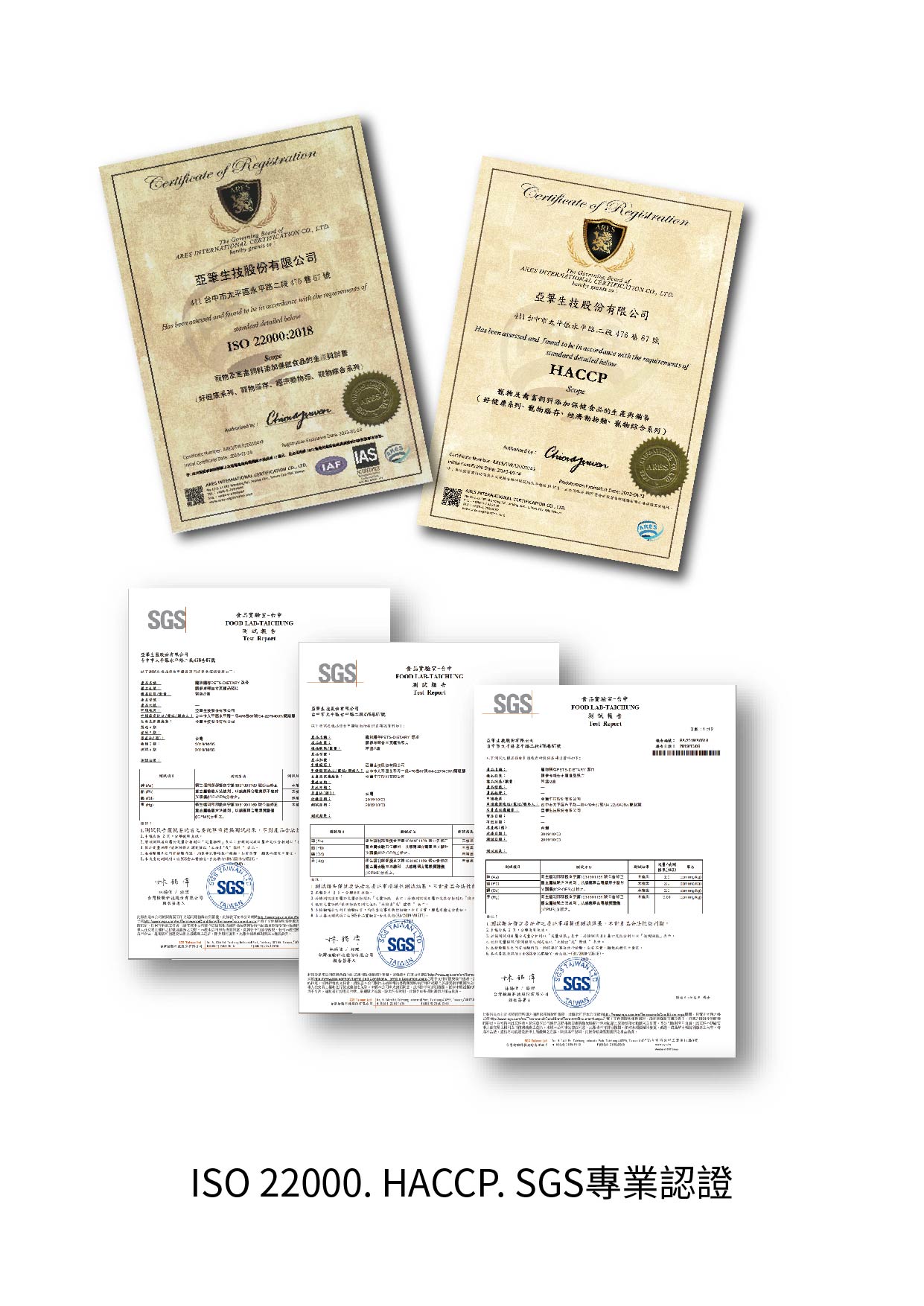 「寵物膳存」以亞筆生技米糠(RBE)專利發酵技術萃取物為基材,並嚴選台灣、歐美國家大型生技廠萃取之植化素,作為毛孩在成長發展階段各種機能性與營養,補充,材料來源都必須經過「SGS 檢驗認證」,不得超標或含有農藥殘留、黃麴毒素、西藥、重金屬,製程中也在 ISO-22000、HACCP 生產監管完成,出廠前每批膳存必須抽樣送交 TAF 合格檢驗所或 SGS 檢驗中心再檢,層層把關,在每一瓶產品注入我們的專業與細心。